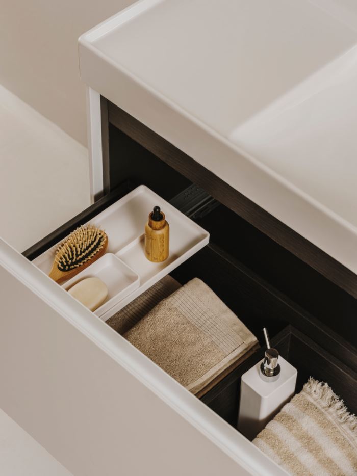 Por otro lado, saber intuitivamente dónde encontrar lo que buscas es una de las características clave de cada lugar que llamamos nuestro. Independientemente de cuánto espacio necesite y cuán formal o íntimo deba ser el baño, Ona acomoda varias soluciones de muebles en estilos bien diseñados para brindar un apoyo amigable y mantener un atractivo natural.