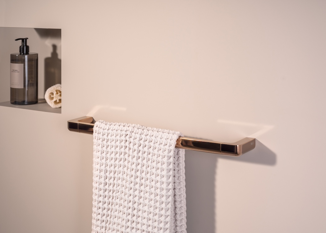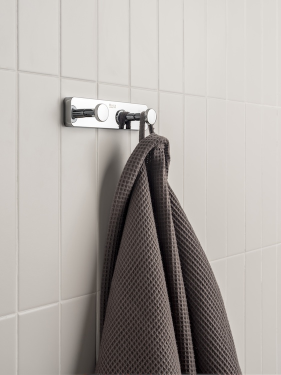 Por otro lado, los accesorios son una buena forma de aportar personalidad al espacio. Los acabados, como el blanco mate de Allegro, añaden un toque de elegancia, mientras que los acabados metálicos, como los nuevos toalleros, portarrollos o colgadores en latón cepillado y cobre cepillado de las colecciones Hotels y Tempo, aportan cohesión sin recargar el espacio. Un toque de color, como el acabado verde de los accesorios Ona, o un contraste, como las repisas Tempo en dos tonos, añaden carácter incluso al baño más sencillo, lo que demuestra que el diseño suele manifestarse en los detalles.
