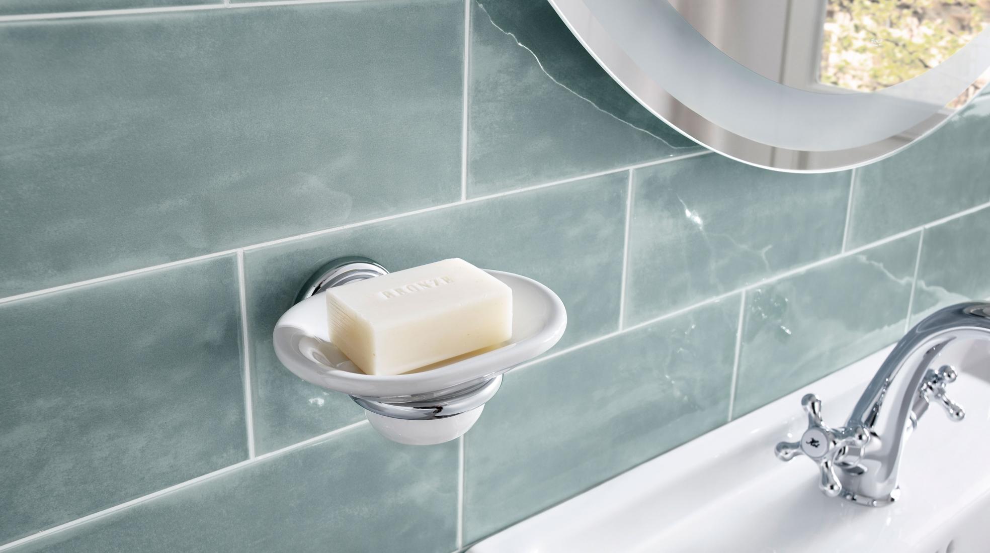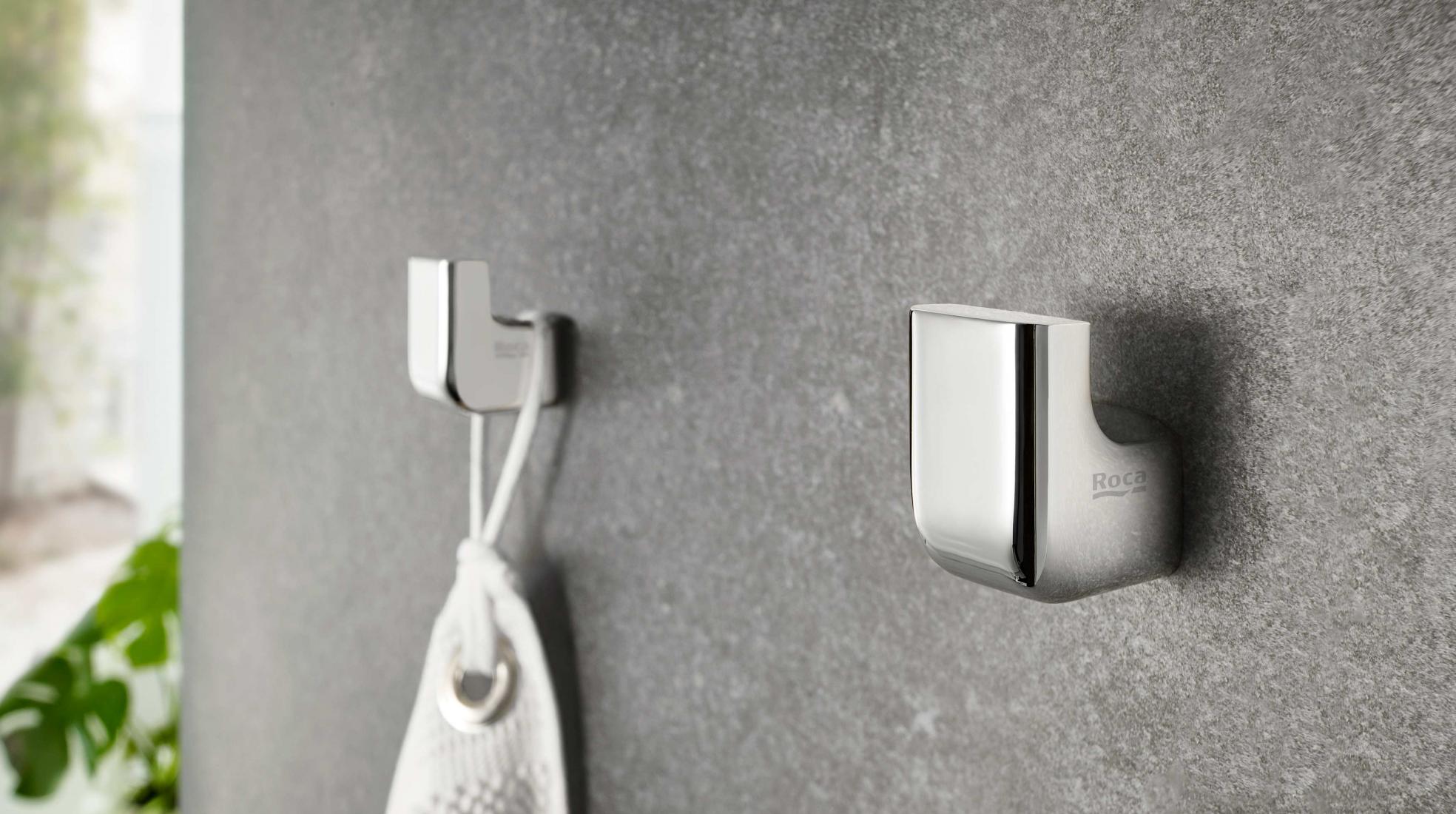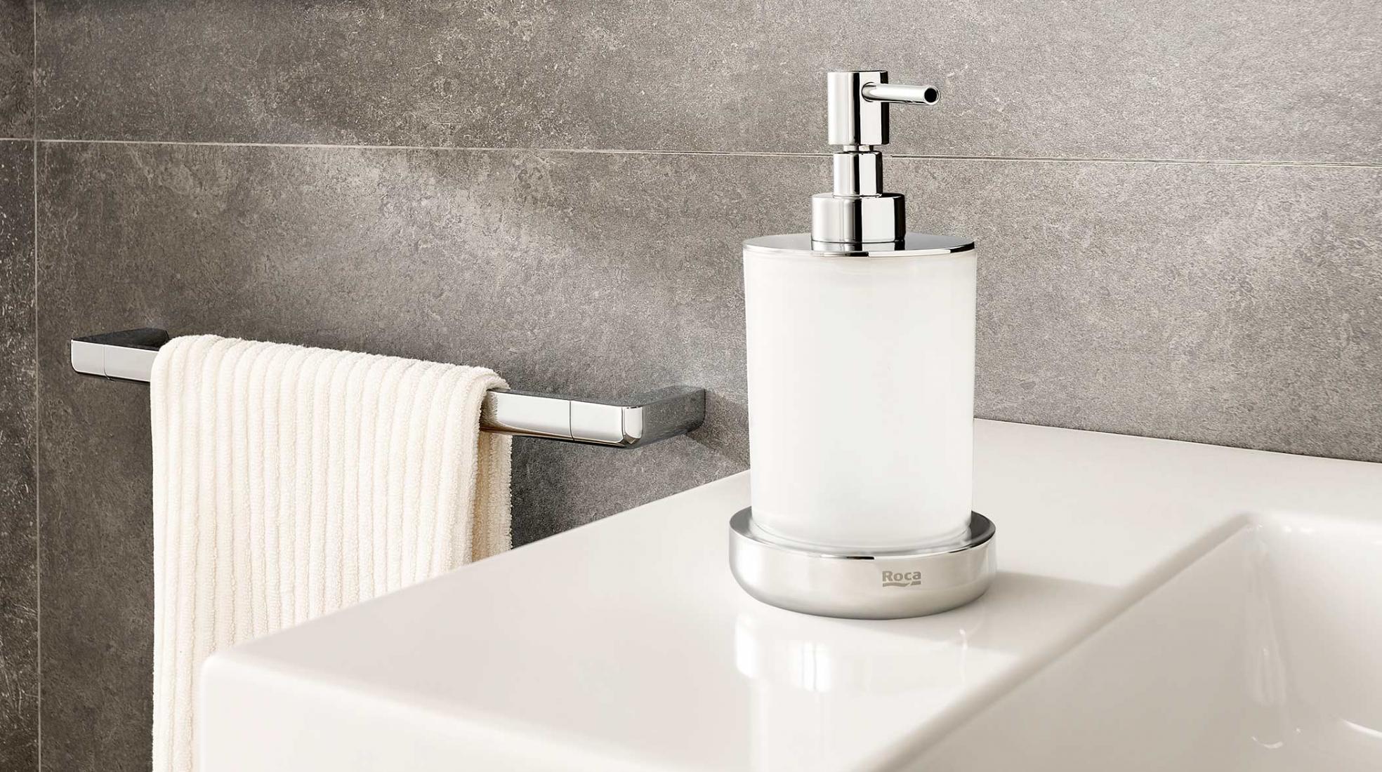 Una colección que rinde homenaje al icónico lavabo Roca de los años 40 tenía que rodearse de accesorios de baño igual de evocadores. Con sus refinados trazos curvilíneos y característicos rebordes barrocos, los accesorios Carmen poseen ese halo retro inconfundible que te ayudará a decorar el baño clásico que estabas buscando. Descubre cómo no solo provoca reminiscencias el brillante metal que dibuja las perchas o los toalleros sino también los accesorios de baño cerámicos en porcelana, como las jaboneras o los dosificadores.