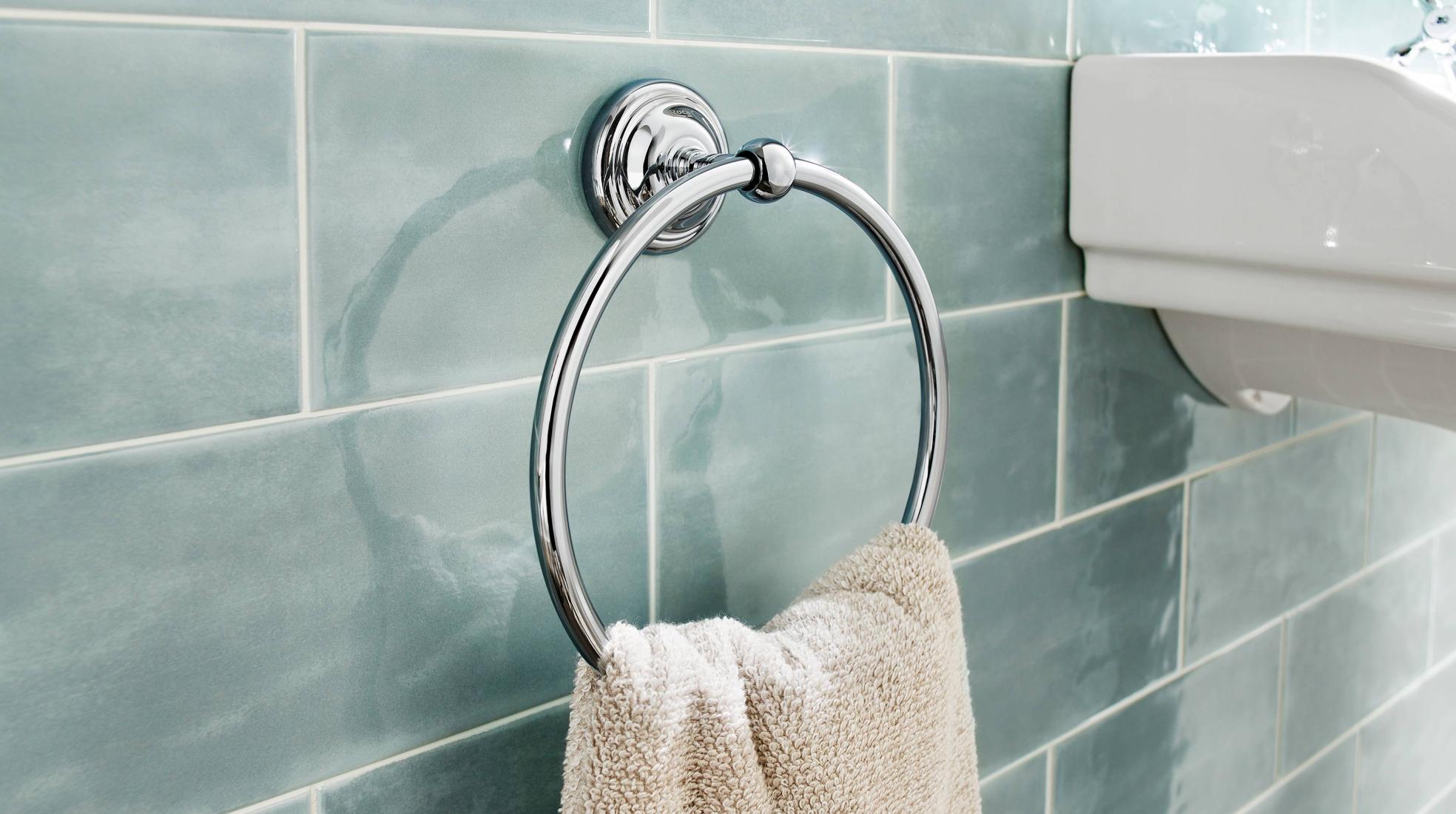 Elige toalleros, jaboneras y repisas para baños modernos o vintage