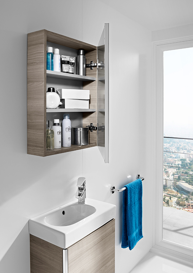 Hay productos absolutamente perfectos para aseos de cortesía y la colección Mini los pone a tu alcance… No solo ofrece armarios con espejo de distintos acabados, sino que los combina con muebles de lavabo de tan solo 250 mm de fondo. En Arena, Wengé, Roble Texturizado o Blanco Brillo, Mini brinda así una doble solución de almacenaje preparada para aprovechar hasta el último centímetro de tu cuarto de baño pequeño.