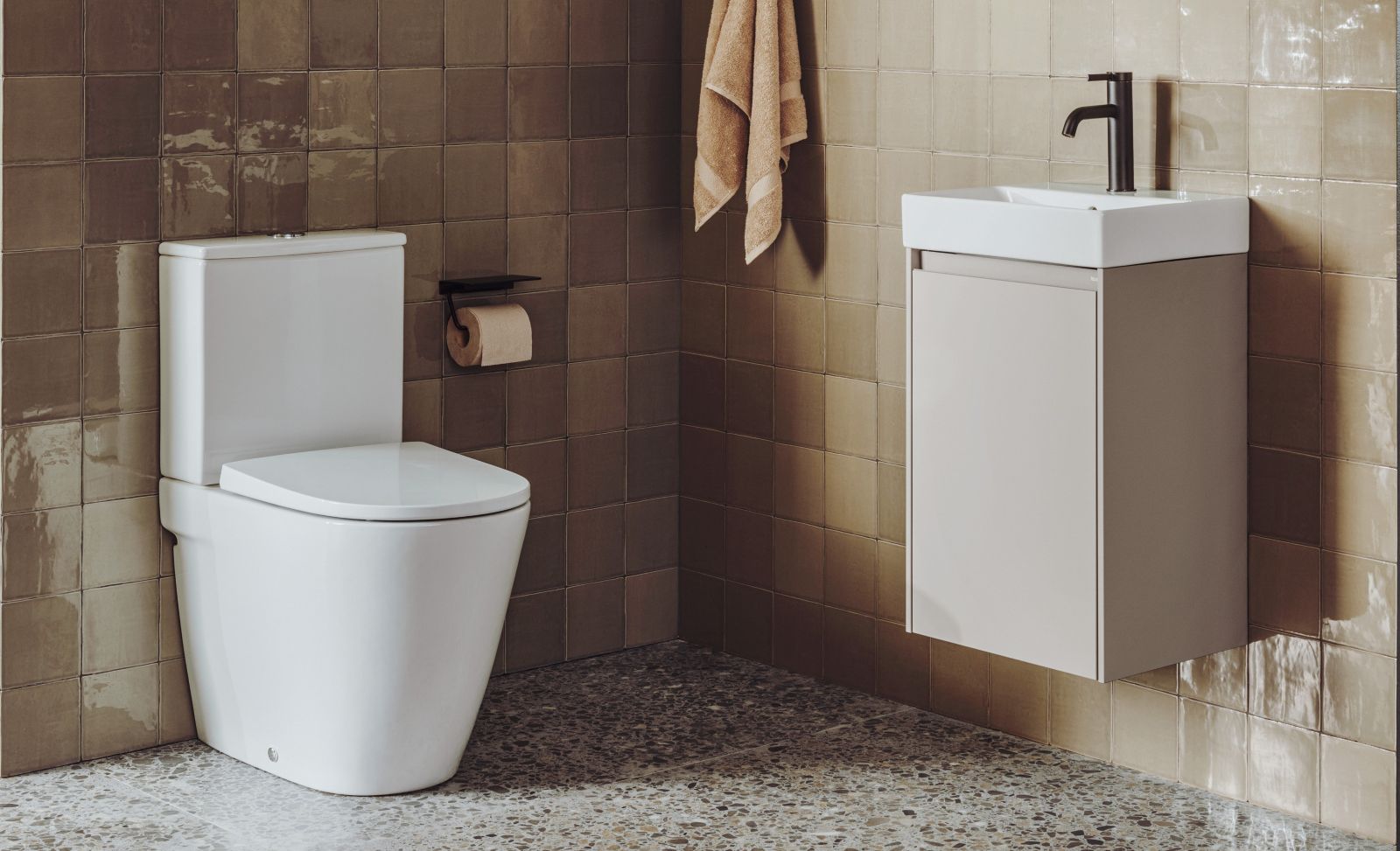 Un inodoro adosado a la pared se instala sobre el suelo y completamente a ras de la pared, con una cisterna oculta. Es un estilo a medio camino entre un inodoro suspendido y uno de tanque bajo. Los modelos adosados a la pared, como los de las colecciones Tura y Ona, encajan a la perfección en hogares modernos, baños en suite o baños en los que se desee generar una sensación de orden y equilibrio.