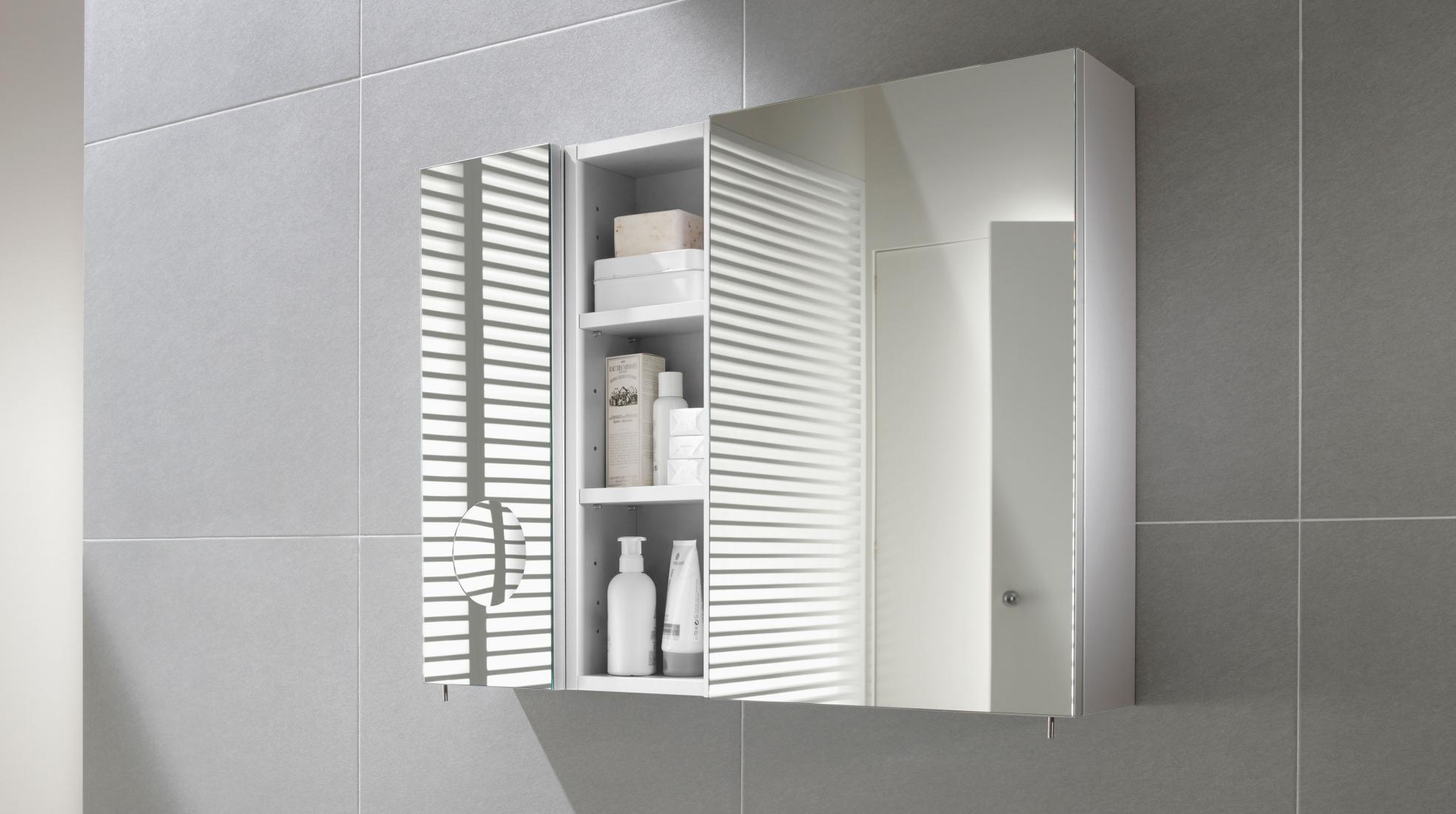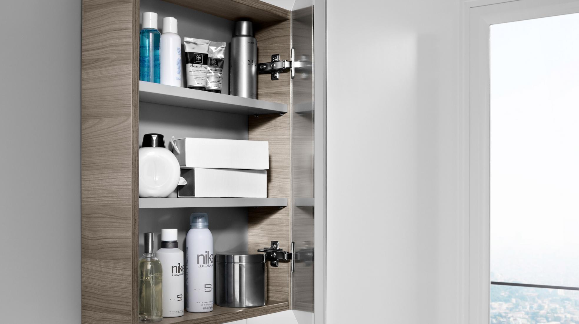 En cuartos de baño especialmente pequeños como los aseos de cortesía, el ingenio de los armarios espejo permite no renunciar a los muebles de baño auxiliares. Utilízalos para tener a mano las cosas que más usáis, como las pastillas de jabón o los cepillos y pasta de dientes.