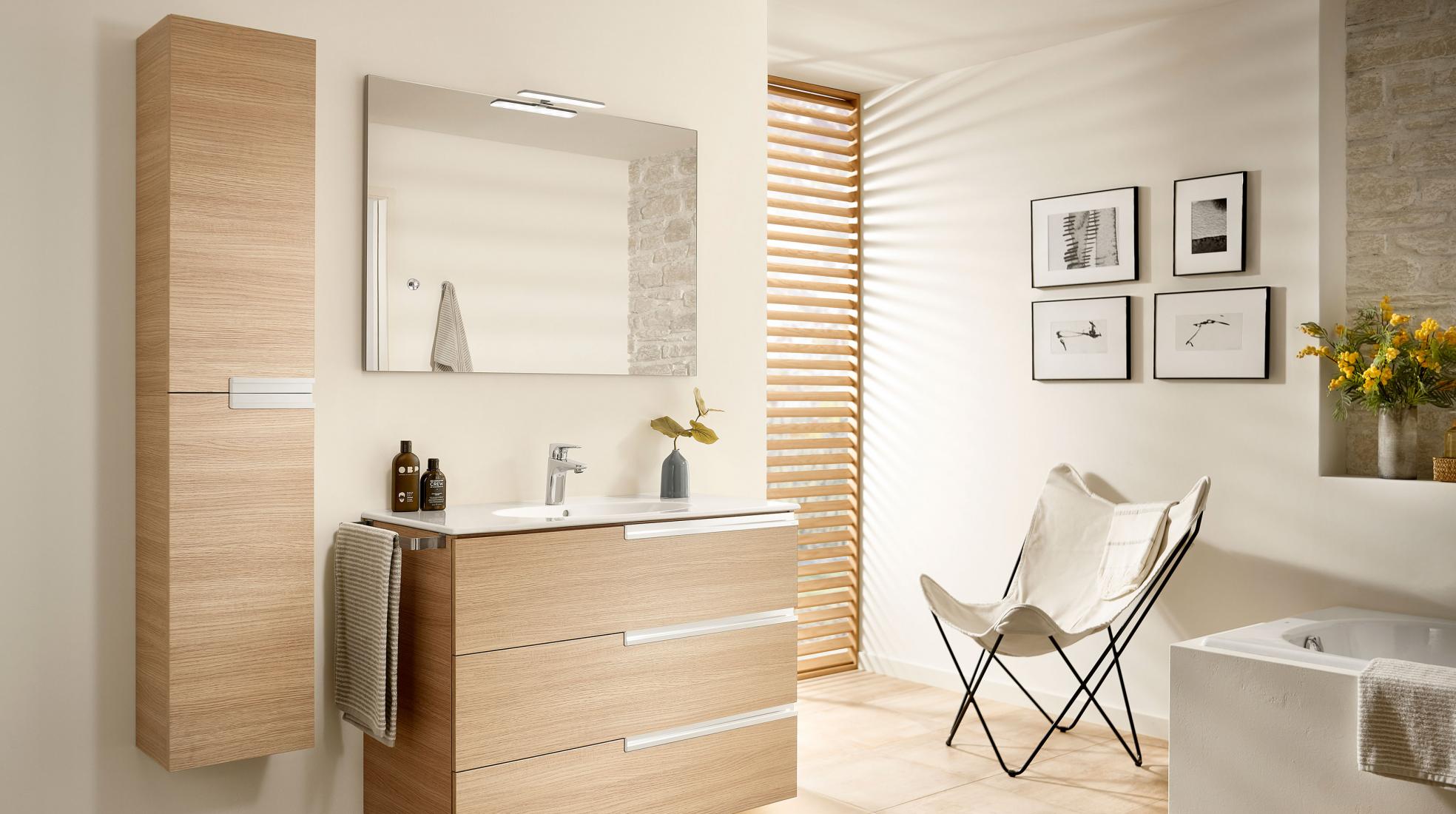 Finalmente, has de saber que entre los muebles auxiliares de baño encontrarás soluciones funcionales que no requieren instalación. Con la colección Suma, podrás disponer de módulos de baño que reposan directamente sobre el suelo y que son ideales para rellenar ese rincón que estabas desaprovechando. Lo mejor de estos módulos auxiliares es que puedes elegirlos con ruedas para desplazarlos a tu antojo según tus necesidades.