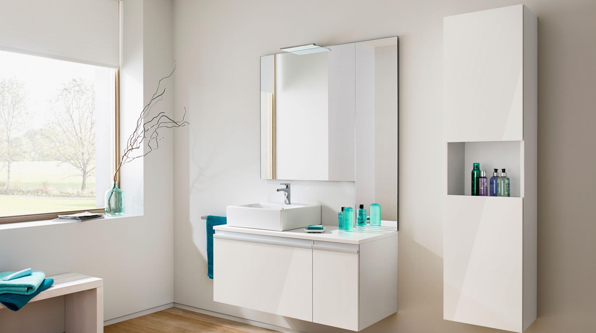 Columnas, armarios, módulos y estanterías de baño para organizar todos tus productos de aseo.