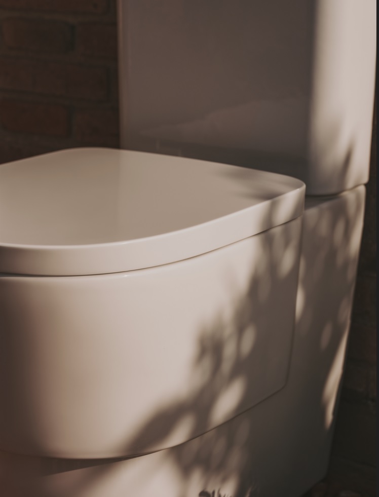 Los diseños esculturales del inodoro y el bidé recuerdan a pequeñas construcciones de porcelana vistas desde la lejanía. Disponibles en modelos suspendidos, adosados a la pared con tanque bajo o tanque alto, están concebidos para integrarse discretamente en el espacio de baño.
