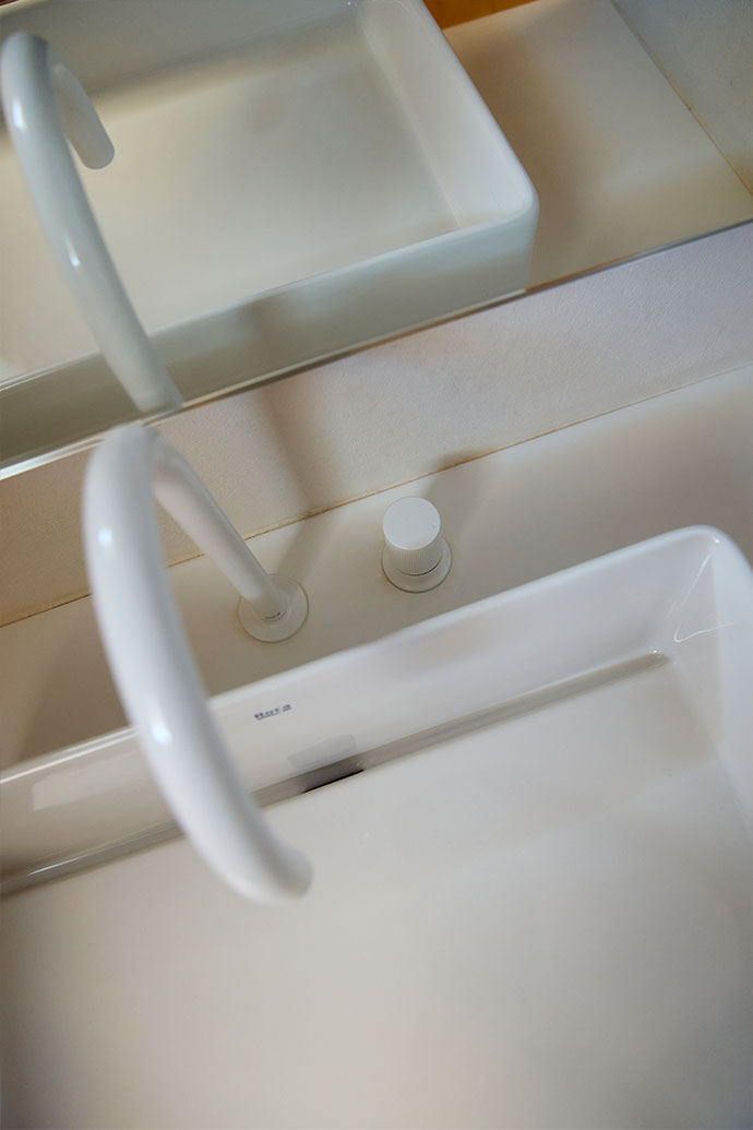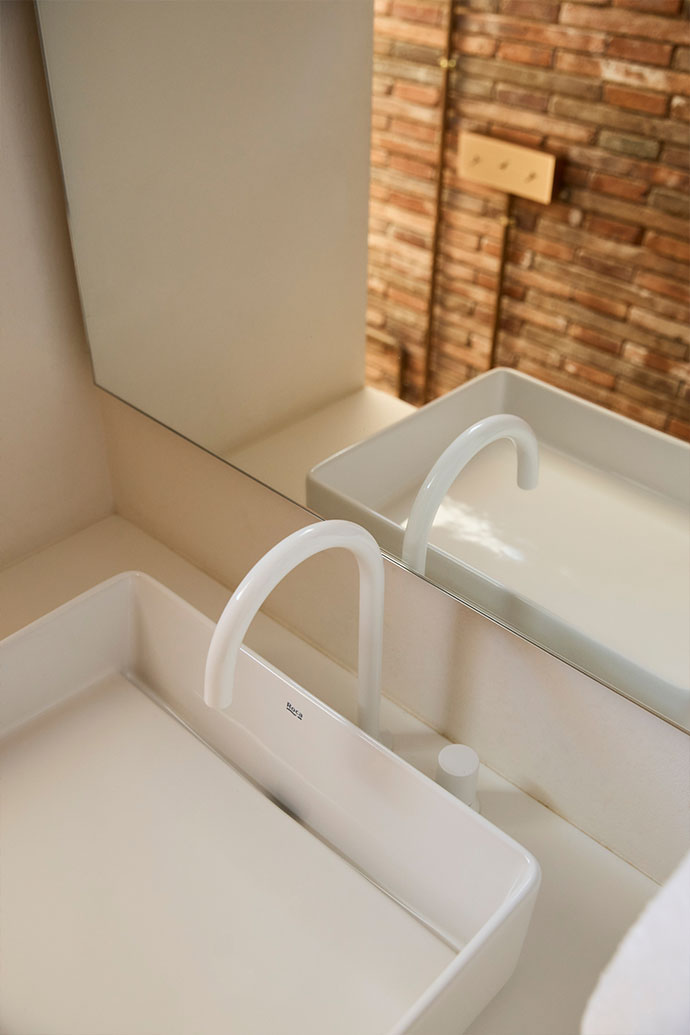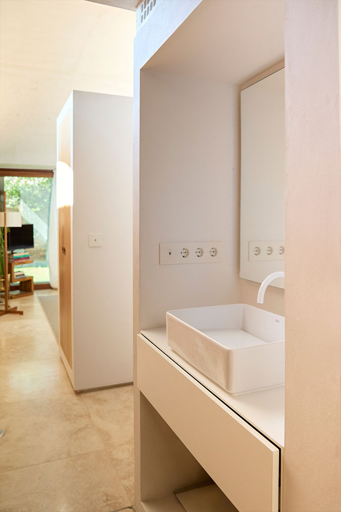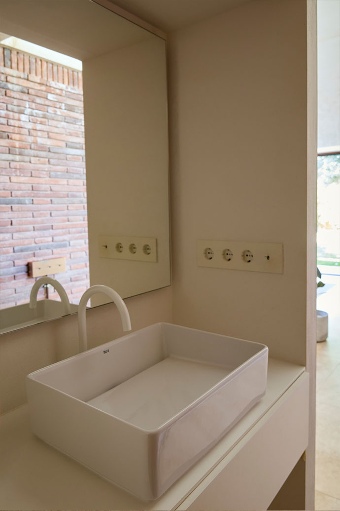 BI: En lugar de crear un baño estándar y cerrado, decidimos que este espacio debía formar parte de la experiencia global de la vivienda. Al distribuir los diferentes elementos por todo el espacio, el baño pasa a ser algo más que una estancia funcional; se convierte en una serie de momentos que se suceden a medida que nos desplazamos por la casa.