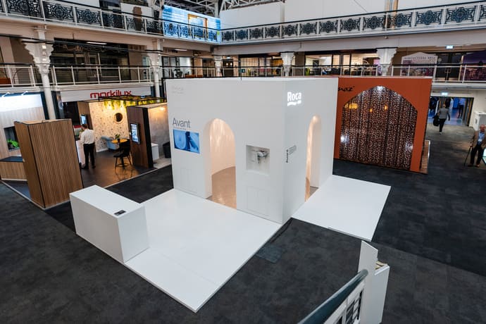 Roca’s HIX 2024 installation drew inspiration from Barcelona’s iconic architecture and the essence of Mediterranean living, as well as the spirit of its latest product innovation. The stand featured two arched entrances that invited visitors into a central circular capsule.
