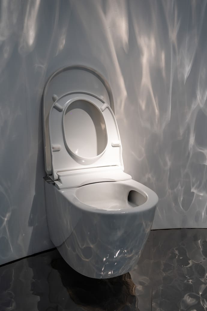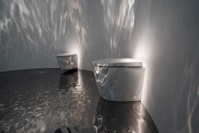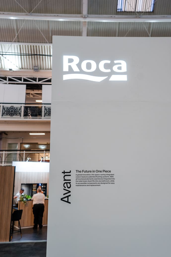 This unique space, with its reflective floor and ambient light and sound installation, housed a preview of Roca’s innovative Avant WC, which seamlessly integrates the cistern within the WC pan, in both floor-standing and wall-hung versions.
