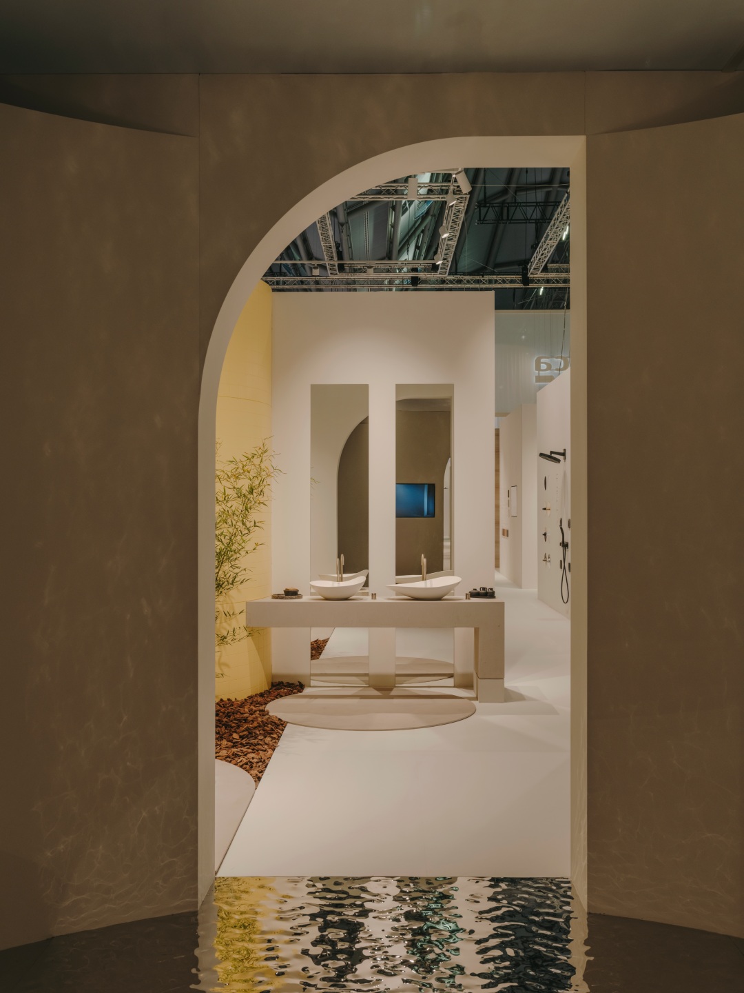 Rooted in tradition yet looking to the future, the stand embodies simplicity, warmth and innovation. Inspired by the interplay of light, materiality and space, the concept reflects Roca’s commitment to design excellence, sustainability and innovation.