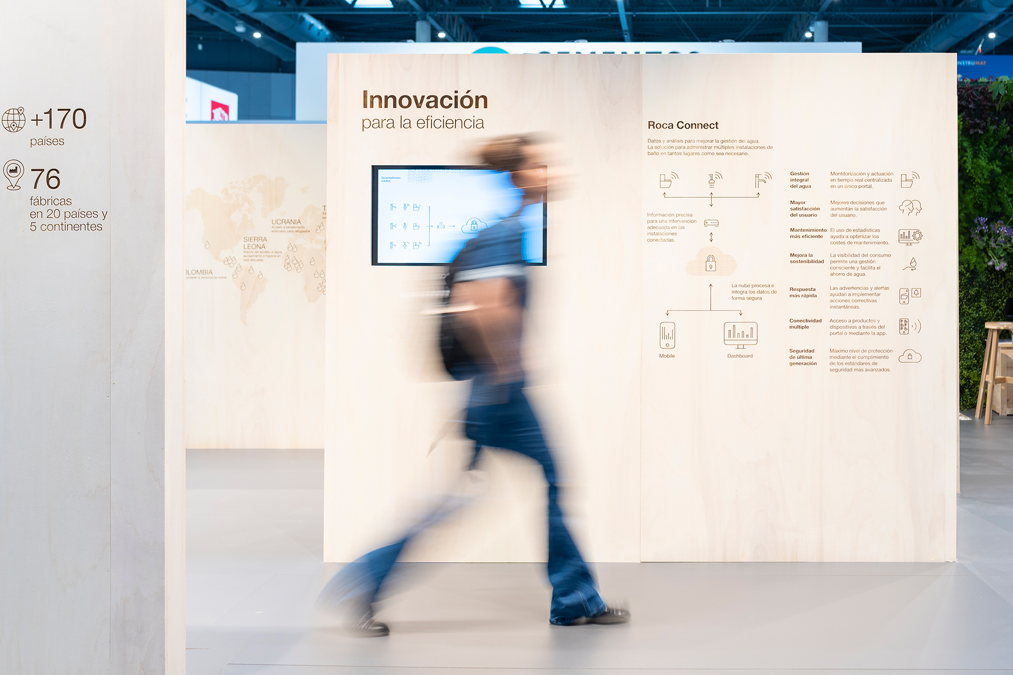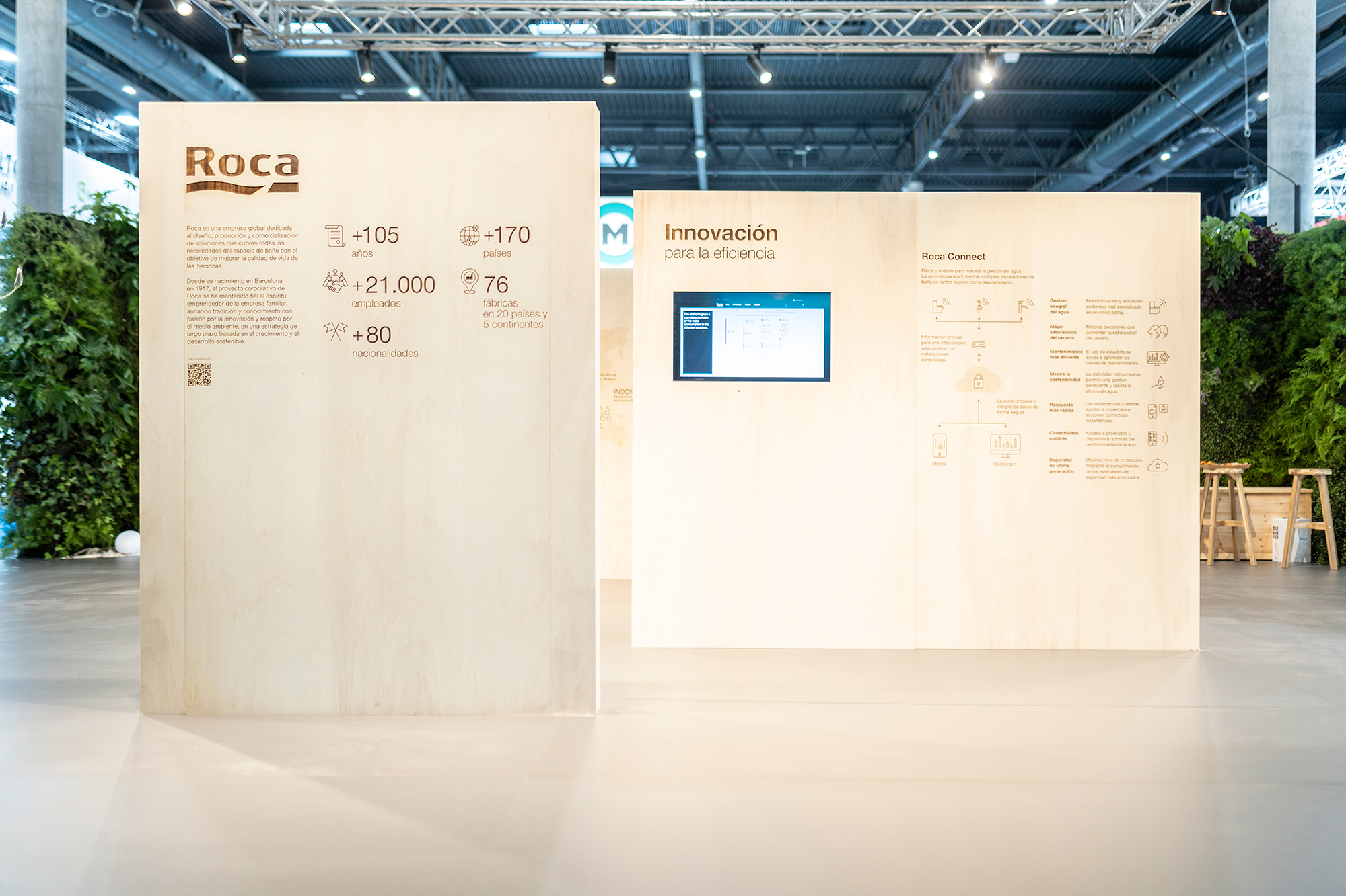 Roca’s stand also included a vertical garden, consisting of more than 200 plants. This living green wall played a vital role in minimizing and neutralizing emissions generated during the construction process. In addition to its environmental benefits, the garden provided an engaging experience for visitors, allowing them to pick a plant to take home and create their own personal oasis. The construction’s carbon footprint will be further offset through several We Are Water Foundation projects.
