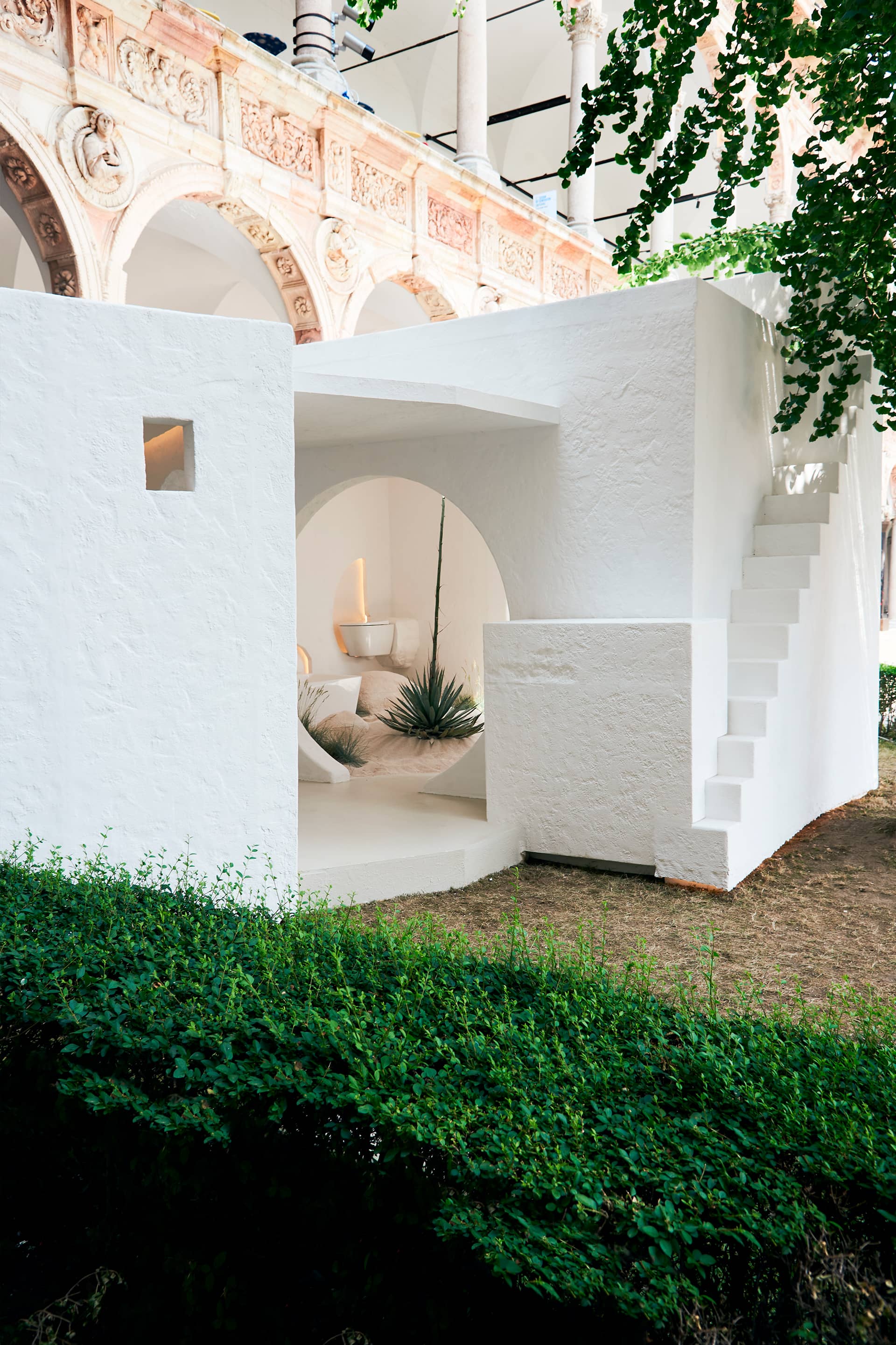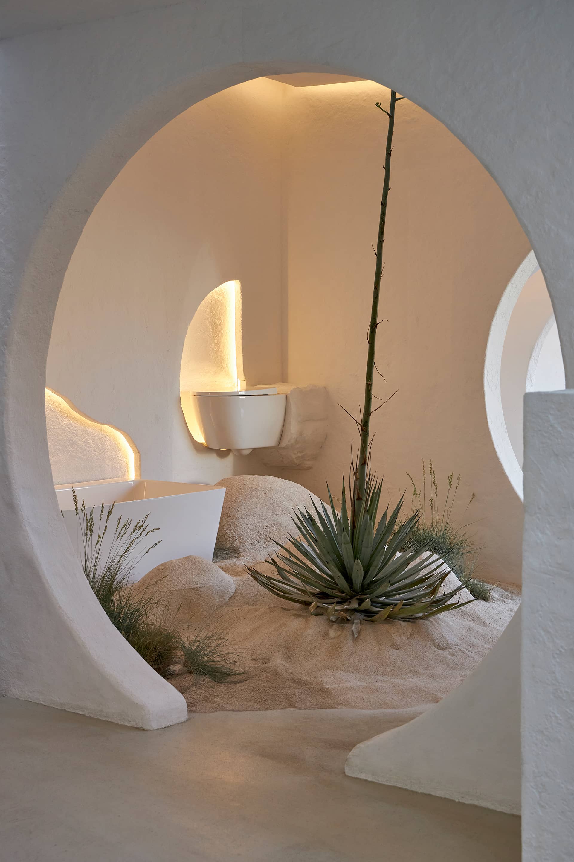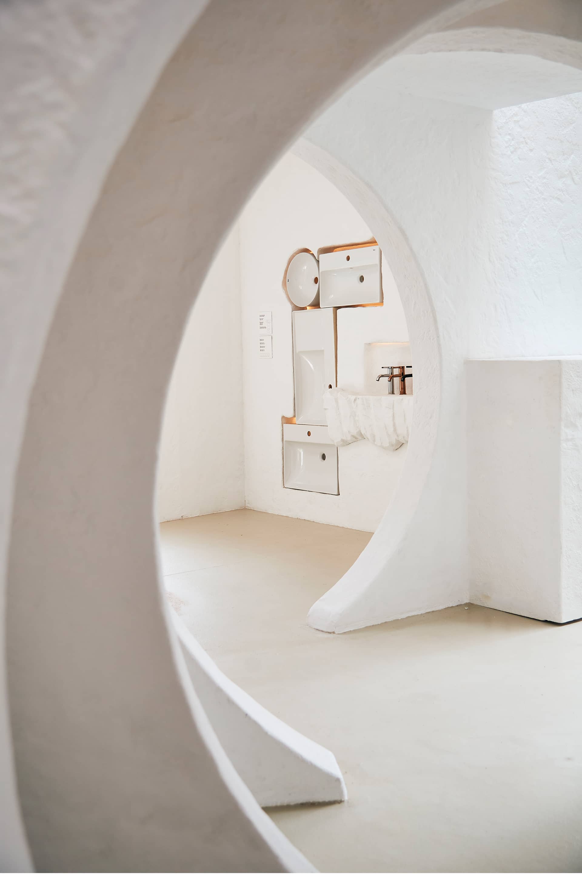 Throughout Influence can be found selected pieces from the Ona collection, whose soft shapes and warm colours are the ideal complement to the naturalist and vernacular aesthetic of the installation. Like traditional Mediterranean architecture, Ona seeks to create spaces of wellness, purity and connection.