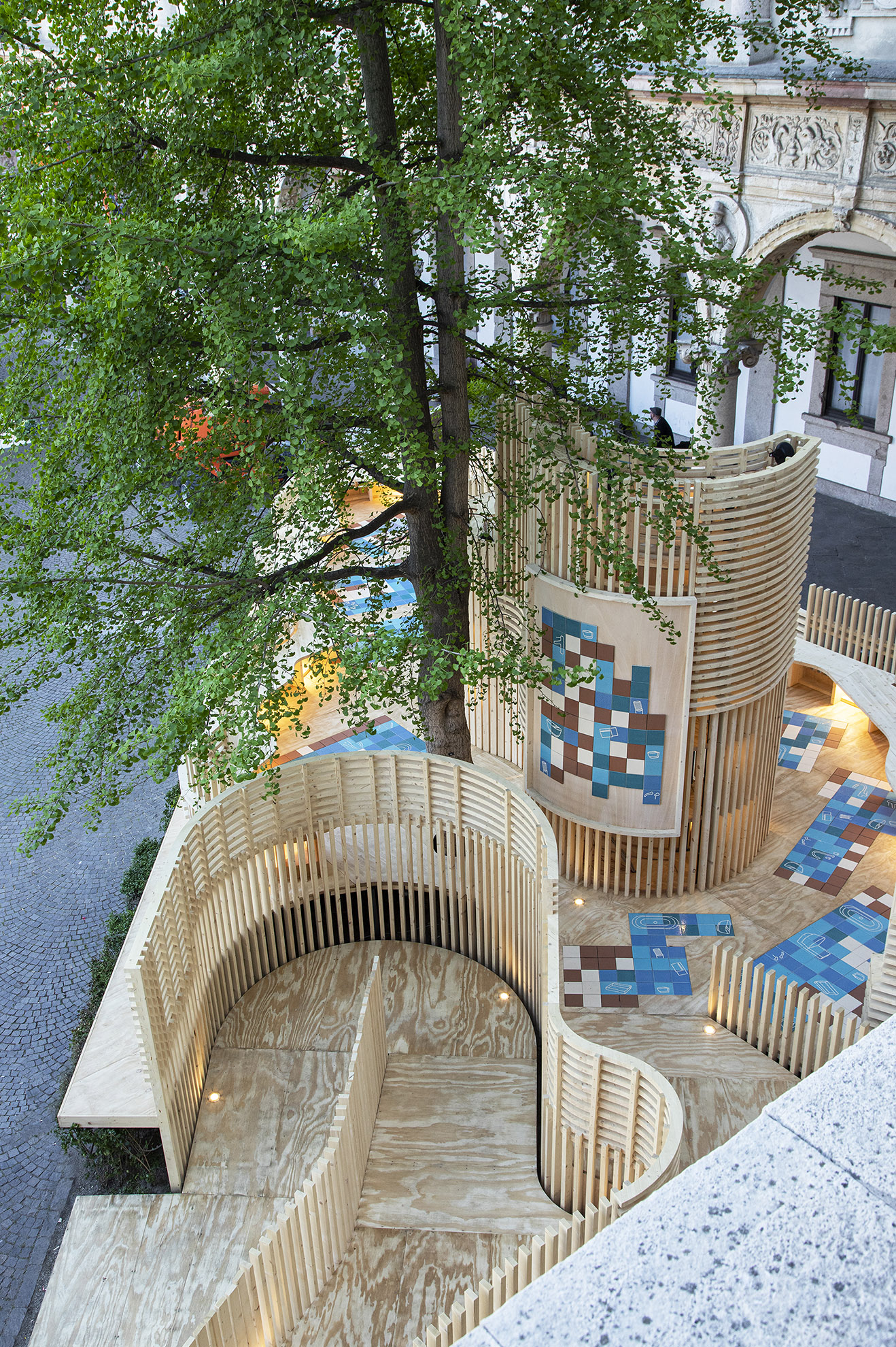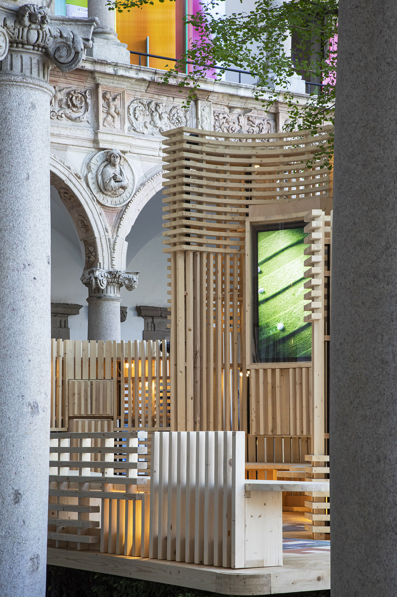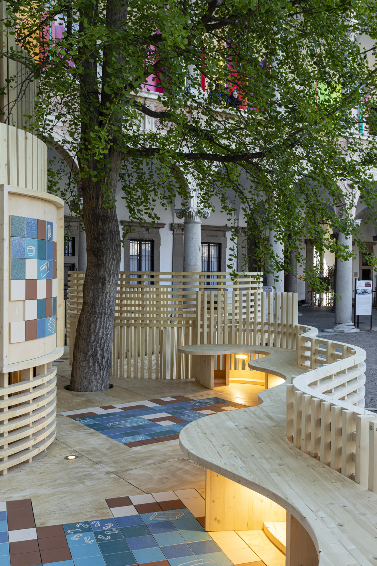 In harmony with the motto “Re-Evolution” and with a view to environmental sustainability, all the materials that make up the pavilion will be disassembled, recovered, and used in other projects.