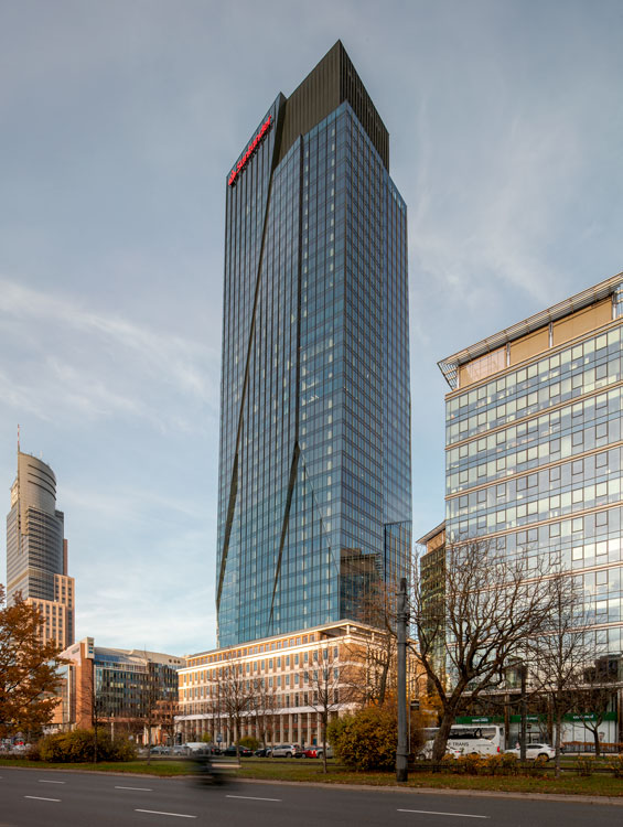 The Bridge is a unique architectural project in Warsaw’s Plac Europejski district that merges past and present. Designed by the Dutch firm UN Studio in partnership with PolskoBelgijska Pracownia Architektury and Ghelamco, a leading investor and developer in Poland’s commercial sector, the Bridge is a soaring, 174-metre tall glass skyscraper that connects to the historic Bellona building, a former printing factory, and a protected monument.