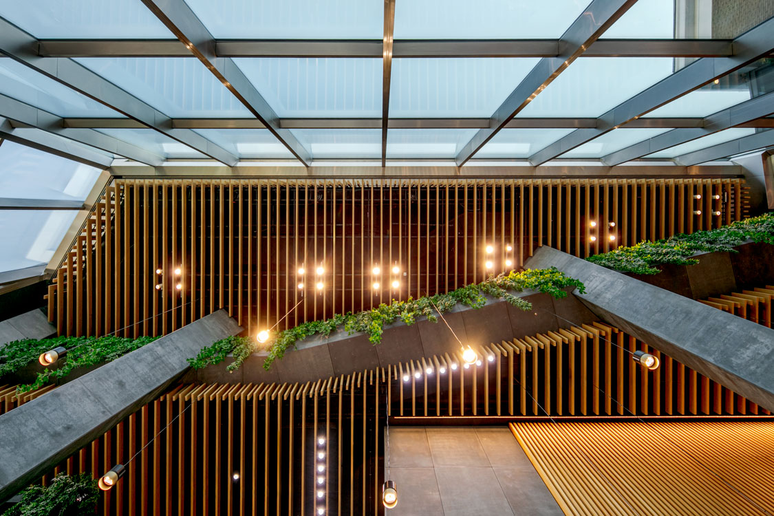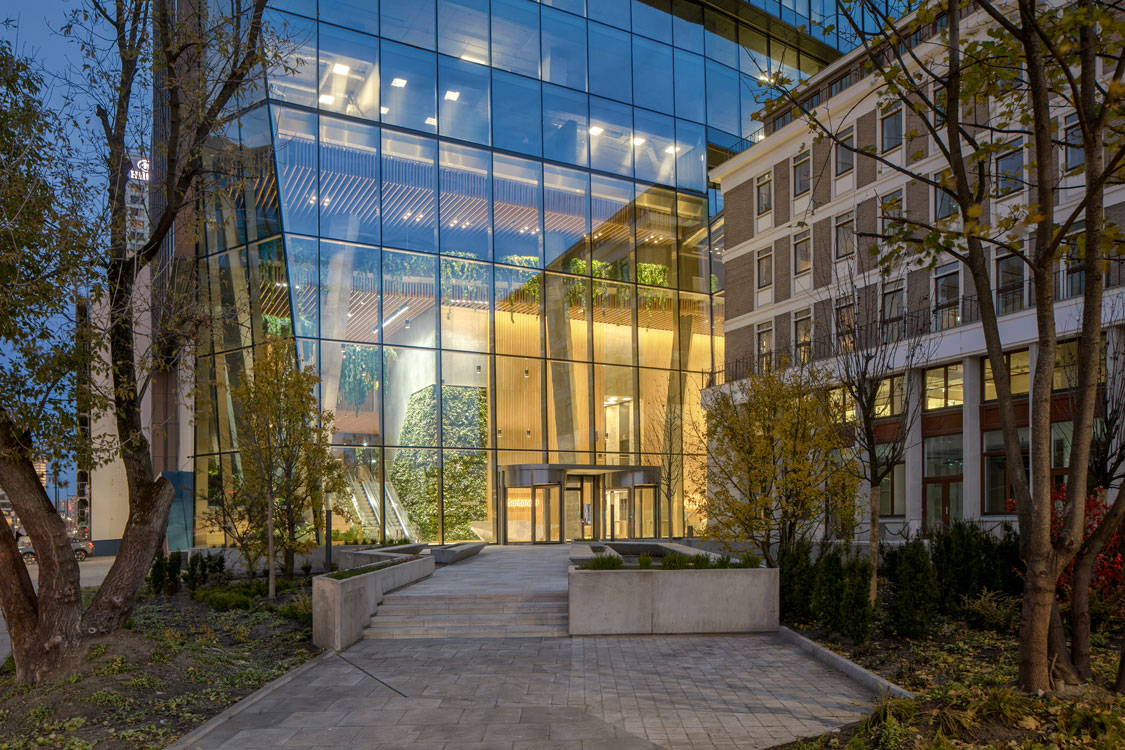 Dutch firm UN Studio put sustainability front and centre in their design for The Bridge, which is certified BREEAM Excellent, WELL Gold and WELL Health Safety. The 40-floor building covers nearly 47,000 square-metres of office space with a café and co-working spaces on the ground floor, 280 underground parking spaces, and an inviting esplanade with open green spaces and electric charging stations. It is the first commercial property in Central and Eastern Europe to have received SmartScore and WiredScore certificates and it includes innovative technologies such as Signal OS, a smart operating system that connects to the buildings various systems for shared oversight on energy, waste and water management.