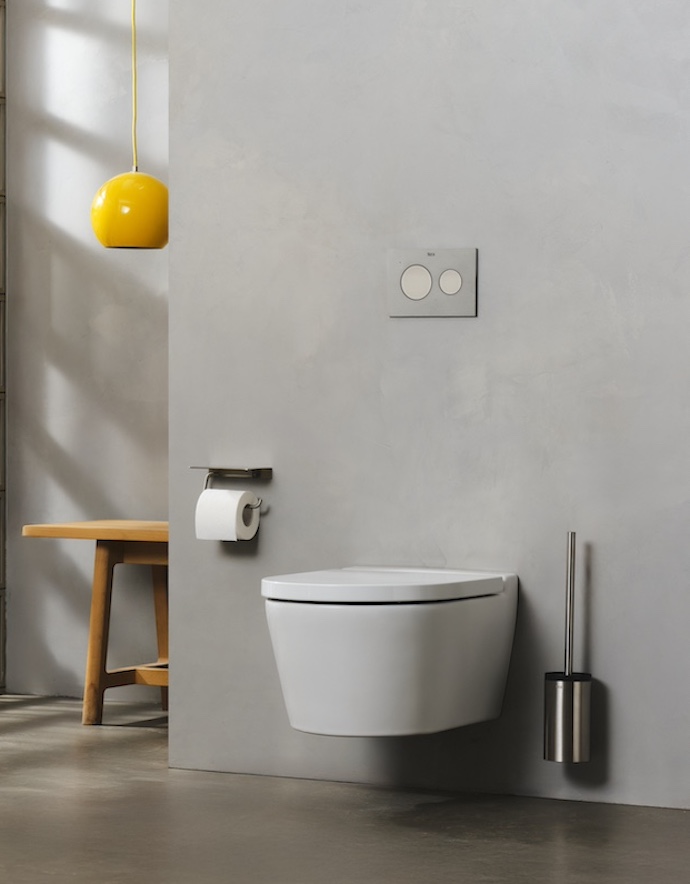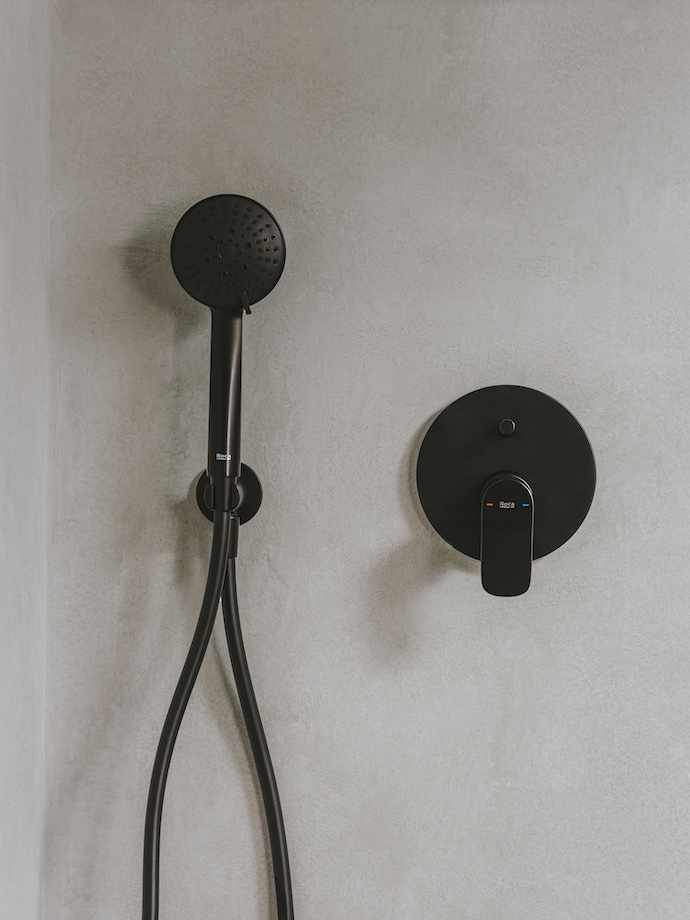 The colour palette plays a vital role in achieving the industrial aesthetic. Neutral tones like grey, black, and white dominate and are often enhanced with metallic finishes to add depth. Fixtures are a great way to attain and industrial design look thanks to the many types of colour finishes. Ona collection faucets, particularly the chrome and the titanium black finish, are ideal complements. To add a pop of colour into an industrial design bathroom, rose gold is a gamechanger. Smaller detailsincluding PS Operating plates in cement, marble or matt black, provide ideal wall accents to enhance the style. With its cool deco-inspired design and sharp chrome finishes, Hotels accessories, including the soap dishes, Extra collection towel rails or the Tempo hooks can tie into the industrial design look seamlessly.