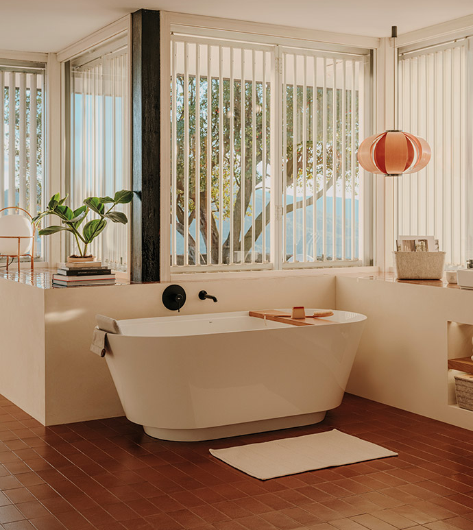 A bath can add an attractive pop of colour and design to a bathroom space, further enhancing its statement-piece appeal. Collections including Raina and Kauai are available in several smart finishes including café, onyx, pearl, black and white, opening up design possibilities in the bathroom. A bathroom designed with earth tones and filled with plants, might benefit from a warm brown coffee finish. Ona collection’s unique rectangular shape is made in black and white for a classic, modern style.