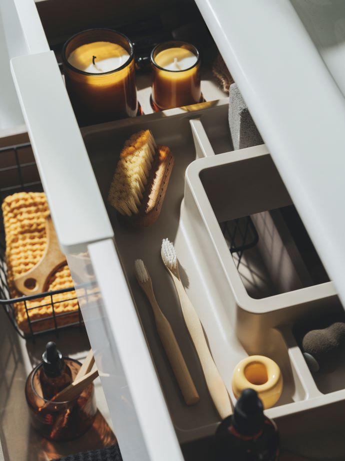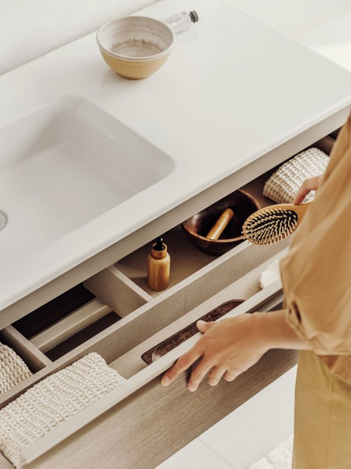Adding drawers to your bathroom might sound like a modest upgrade, but the effect is sure to improve your space. The right storage turns a bathroom into a place of order and ease—a backdrop for your rituals and routines, free from distraction. Every bathroom drawer you open becomes little moment of calm with everything in its place, beautifully arranged.