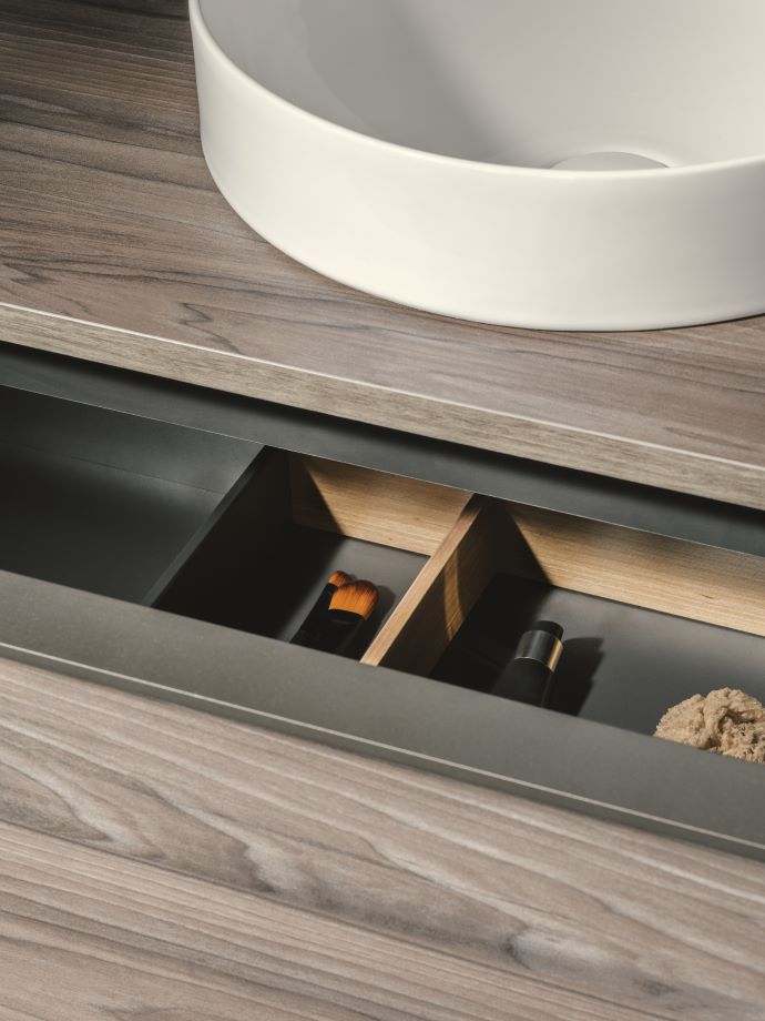 Forget fumbling through deep cupboards or shuffling bottles around to find that new face cream you swore you bought. Bathroom Drawers make everything visible and within reach, gliding open to reveal their contents in an instant. Internal dividers are an added bonus, as featured in the Inspira and Ona collection base units, instantly allowing you to have a smoother morning routine and clutter-free countertop.