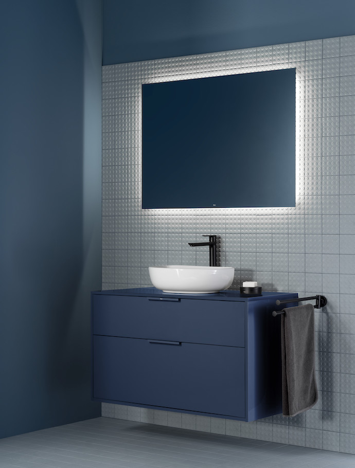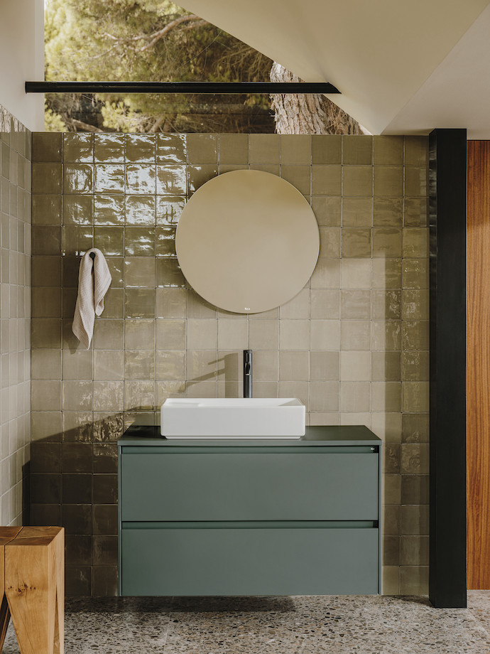 Colour finishes will tie into your bathroom space and make it complete. For a dynamic colour palette, Ona’s matt green and Optica’s matt blue are exciting additions that offer bold pops of colour. These shades work well with a variety of faucets and fittings, including rose gold for a contemporary, elegant style or matt white for a fun, playful look.