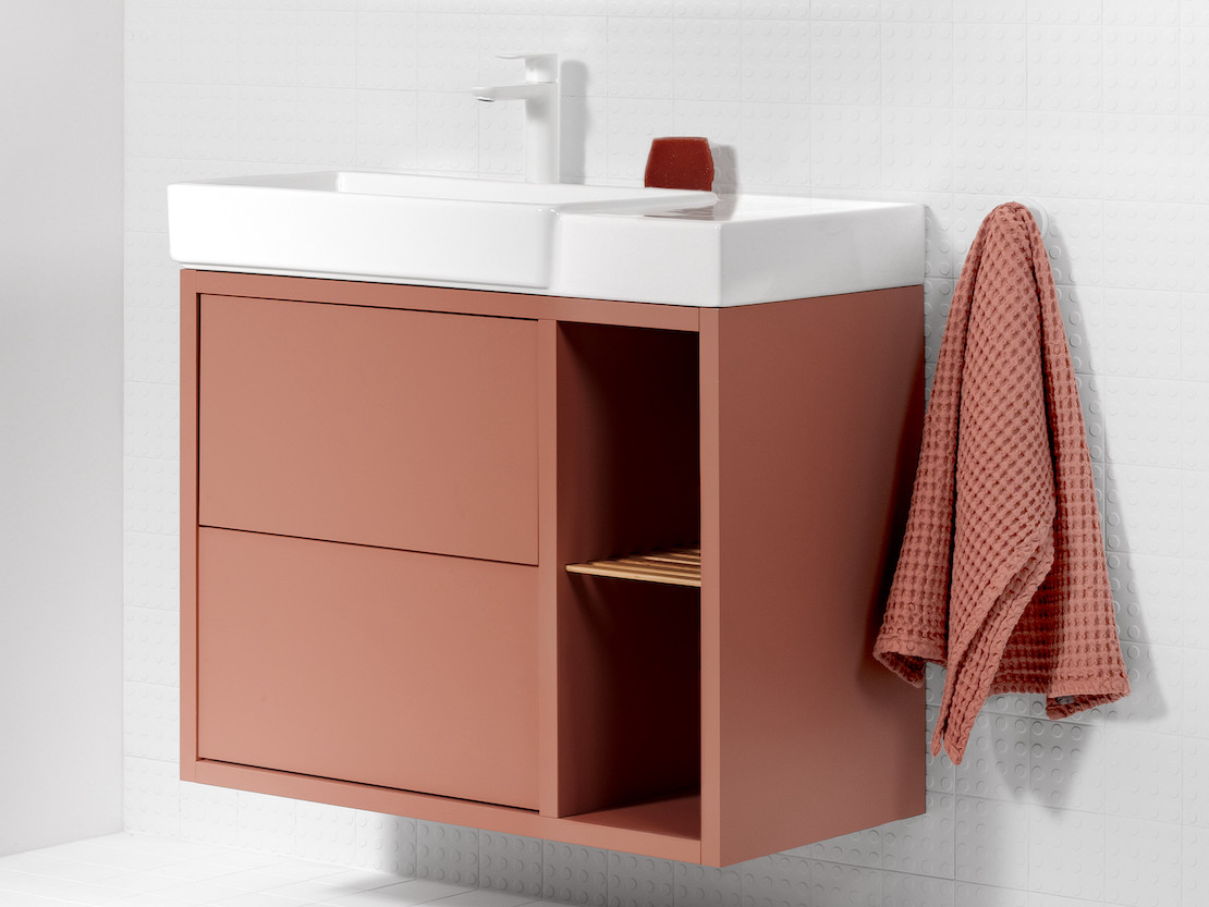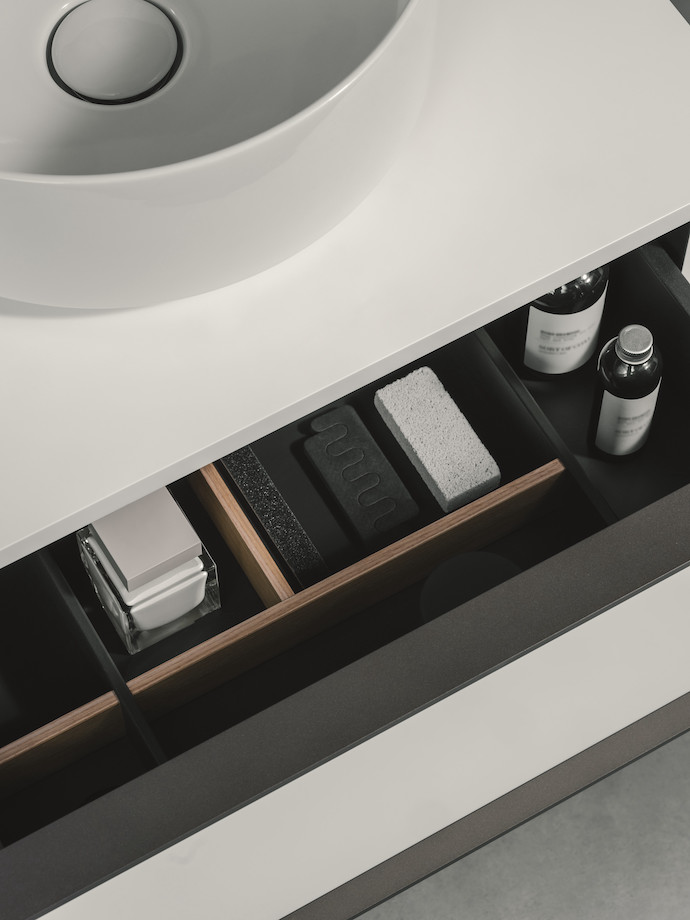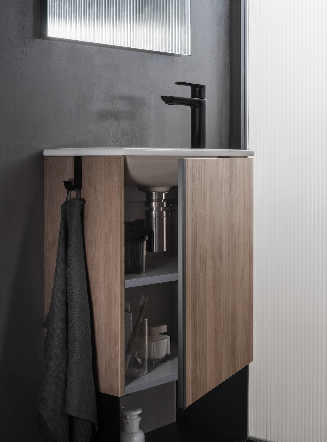 Collections like Inspira and Ona offer more than just furniture units – they include freestanding columns and larger cabinets to help hide clutter and maintain a clean, polished look. The Extra collection is designed specifically for this purpose, offering additional columns or cabinet to increase storage in your bathroom.