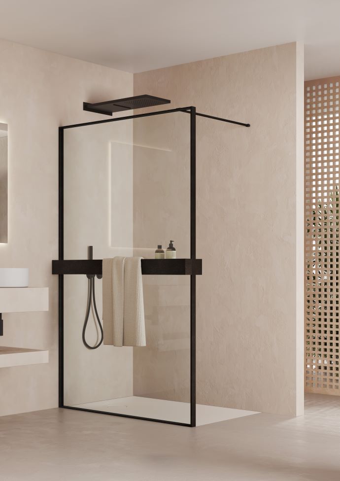 Walk-in shower enclosures are a favourite for modern, open-plan bathrooms. A simple, fixed panel of glass, sometimes frameless, sometimes with slim brushed matt black or polished silver profiles, as with Line, Line Plus and Victoria Plus collection, creates a seamless look that feels both airy and sophisticated. Some prefer just one fixed panel with an open space for entering and exiting the shower, while other spaces require the addition of a side panel for added protection from splashing water.