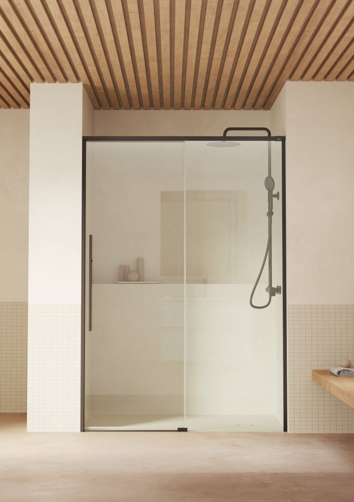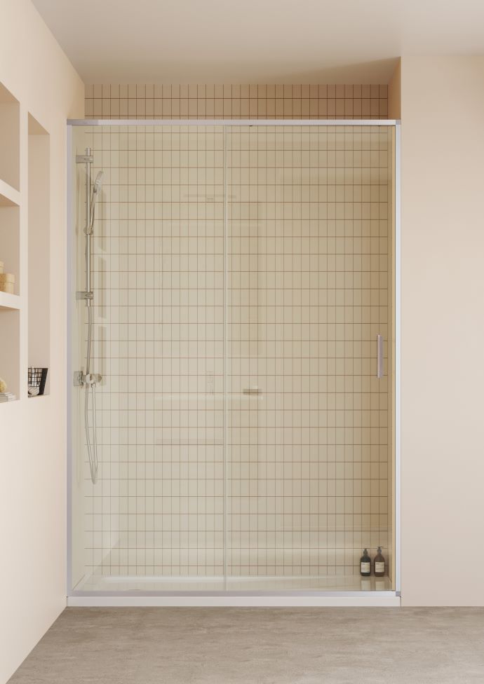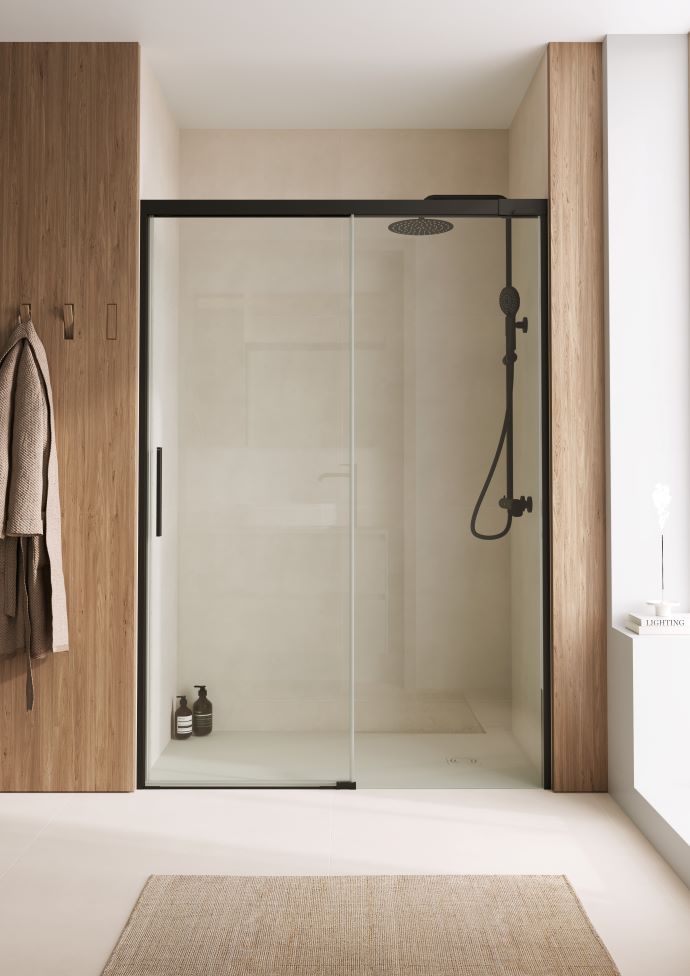 Sliding doors are practical when every centimetre counts. Rather than swinging outwards, the panels glide along tracks, making them ideal in bathrooms where a swing door might bump into fixtures or furniture. It is also one of the most popular models for its simplicity. Victoria Plus collection, with chrome and black matt frame, is one of the most streamlined sliding shower screen collections. Naray collection has a modern sliding door style that is best paired with a fixed panel as well. Its minimalist handle is perfect for modern bathrooms. Brisa collection offers a sliding door version in polished silver and matt black frame, and it has an elegant, elongated handle in the same finish.