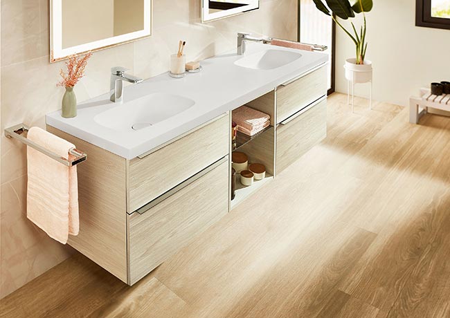 We seek our own style and try to avoid uniformity. Every detail in your home reflects your personality, that is why a modular bathroom vanity is the ideal option to customize every detail and unleash your creativity. By combining modules, finishes and basins, Storia offers more than 10,000 configurations that respond to multiple storage needs. Follow the steps to create a tailored furniture unit and write your own version of Storia with the outstanding levels of comfort, resistance and quality that define Roca bathroom furniture units.