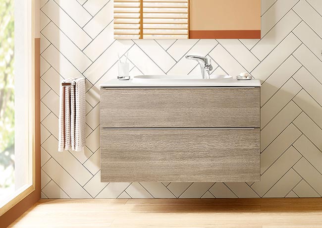 Customizing your bathroom is always exciting and with Storia there are several alternatives for the basin. Opt for the warm texture of Surfex®, the finesse of Fineceramic® or the permanent shine of ceramics and discover the different installation options and range of finishes.