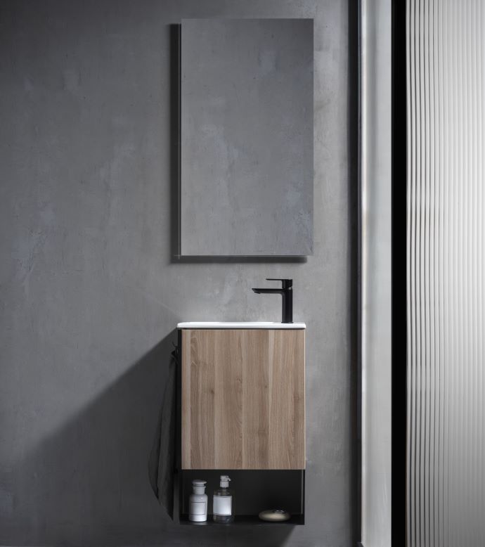 Need something slim? These collections feature furniture as shallow as 25–27 cm – almost half the depth of a standard unit – making them ideal for tight spaces. Tura includes a practical side shelf for added functionality, while Ona exudes minimalist calm with its sleek, single-door design. If you're looking for style in small doses, the Mini Pro collection is perfect, with integrated basins small bathroom sinks and chic metal legs that can elevate any compact bathroom.