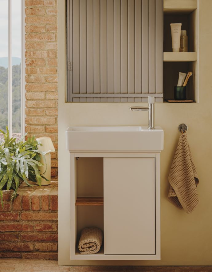 When space is limited, every detail matters. Compact, multifunctional bathroom furniture is the key to keeping things tidy and beautiful. Collections like Tura and Ona, inspired by Mediterranean simplicity and modern design principles, and Mini Pro, a sleek space-saving collection that doesn’t compromise on aesthetics, are ideal for this.