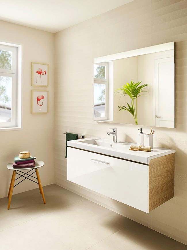 When the dimensions of the bathroom are no longer a problem, each member of the family can have their own space. Not only their drawer or specific shelf, they can also have their own basin. Innovate with Roca’s largest base unit, available in the Beyond collection, with the hidden divisions of Prisma or with the option of double bowl of Stratum, with an additional power socket and Bluetooth® speakers you can connect to your smartphone.