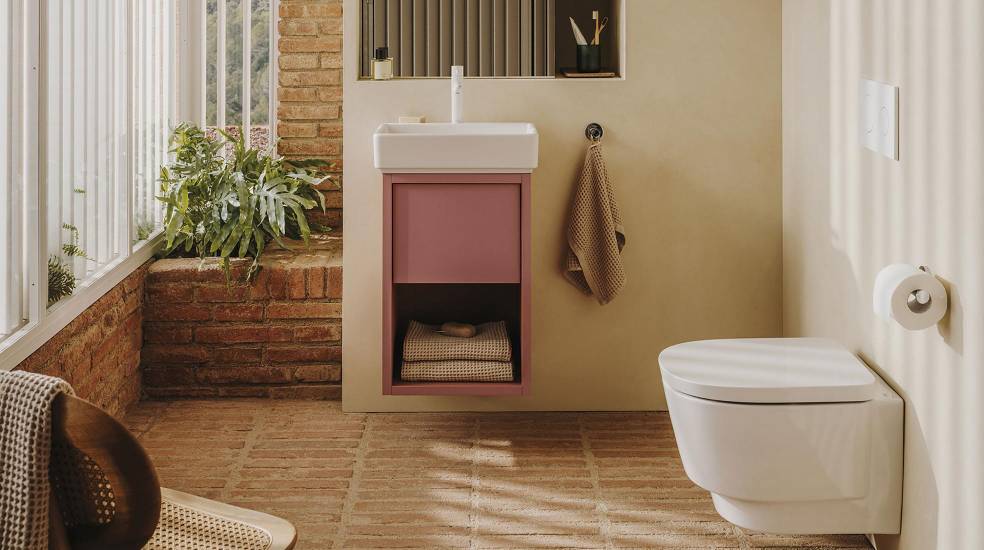 Reflecting this trend are the faucets in the Nu collection, which showcase surprising colours and innovative shapes, and combine ingenuity, sustainability and creativity. The bathroom furniture in the Optica and Tura collections also follow this trend with their atypical colours and innovative storage solutions. In Tura, the use of unusual tactile materials creates unexpected sensations in the bathroom.