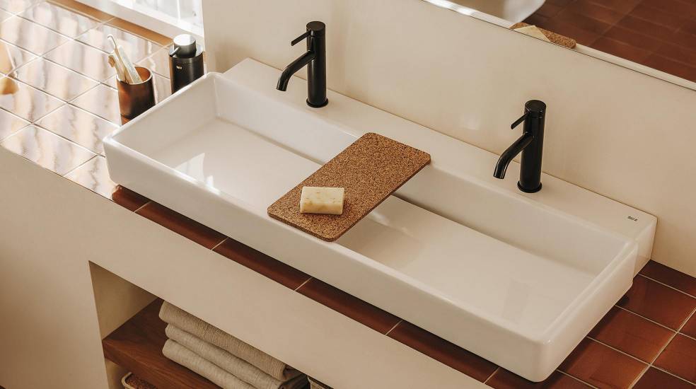 Nature-inspired materials, such as Roca’s Ona collection, and the architectural shapes and earthy surfaces of Tura activate our senses. The Raina bathtub promotes relaxation and wellbeing. The Cratos shower tray and Ariane bathtub have a rough finish, while the Pyros shower tray has a soft sandy texture. These materials offer a complete tactile experience.