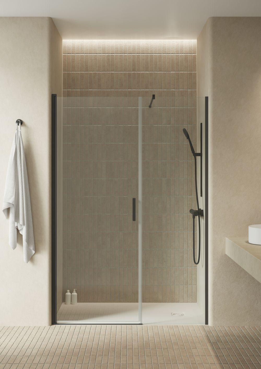 The finish of shower enclosures can give structure and definition to the shower space, while complementing the transparency of glass screens. Alisio (available in 2026) is a versatile shower enclosure collection that offers a range of glass panel sizes and the option of sliding and walk-in models. It has several finishes to upgrade the bathroom space including brushed brass, matt black and matt white, as well as classic polished silver. Alisio’s innovative design elements include a reimaged sliding concept that uses top and bottom wheels for a smooth and seamless opening and closing. It also features a homogenic perimeter that meets the shower tray and helps avoid dirt accumulation and water leakage.