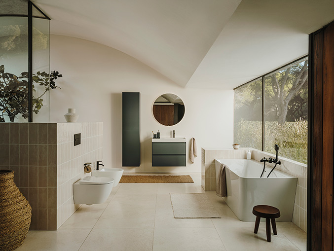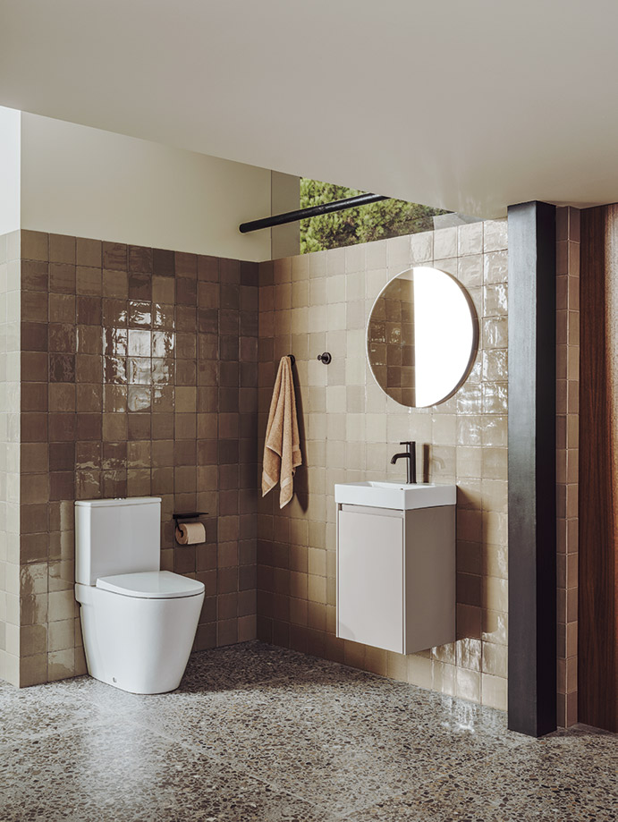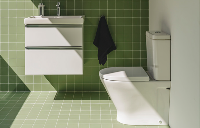 positioning the toilet so that it is easy to access and use, will instantly create a more cohesive space. Additionally, coordinating the toilet with other elements in the bathroom, such as matching it with the basin or bath, brings a sense of harmony to the space rather than having a multitude of styles and shapes. To create a unified space in which pieces are part of the same collection, consider Ona, The Gap or Tura collections, which feature furniture, basins, baths and bidets.