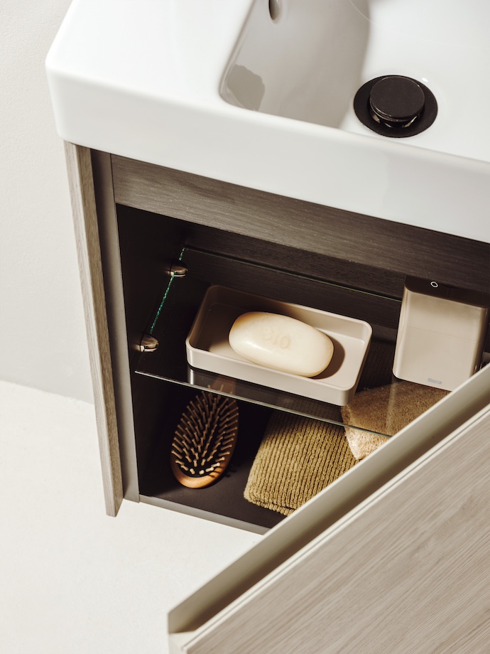 If you prefer a style that blends classic and modern elements, The Gap furniture offers three finishes in different shades of wood (Nordic ash, walnut and textured city oak). These are all excellent options for creating an inviting and warm bathroom. This type of element adds warmth to any environment and can be easilyadapted to various designs and spaces, with compact or larger furniture units.